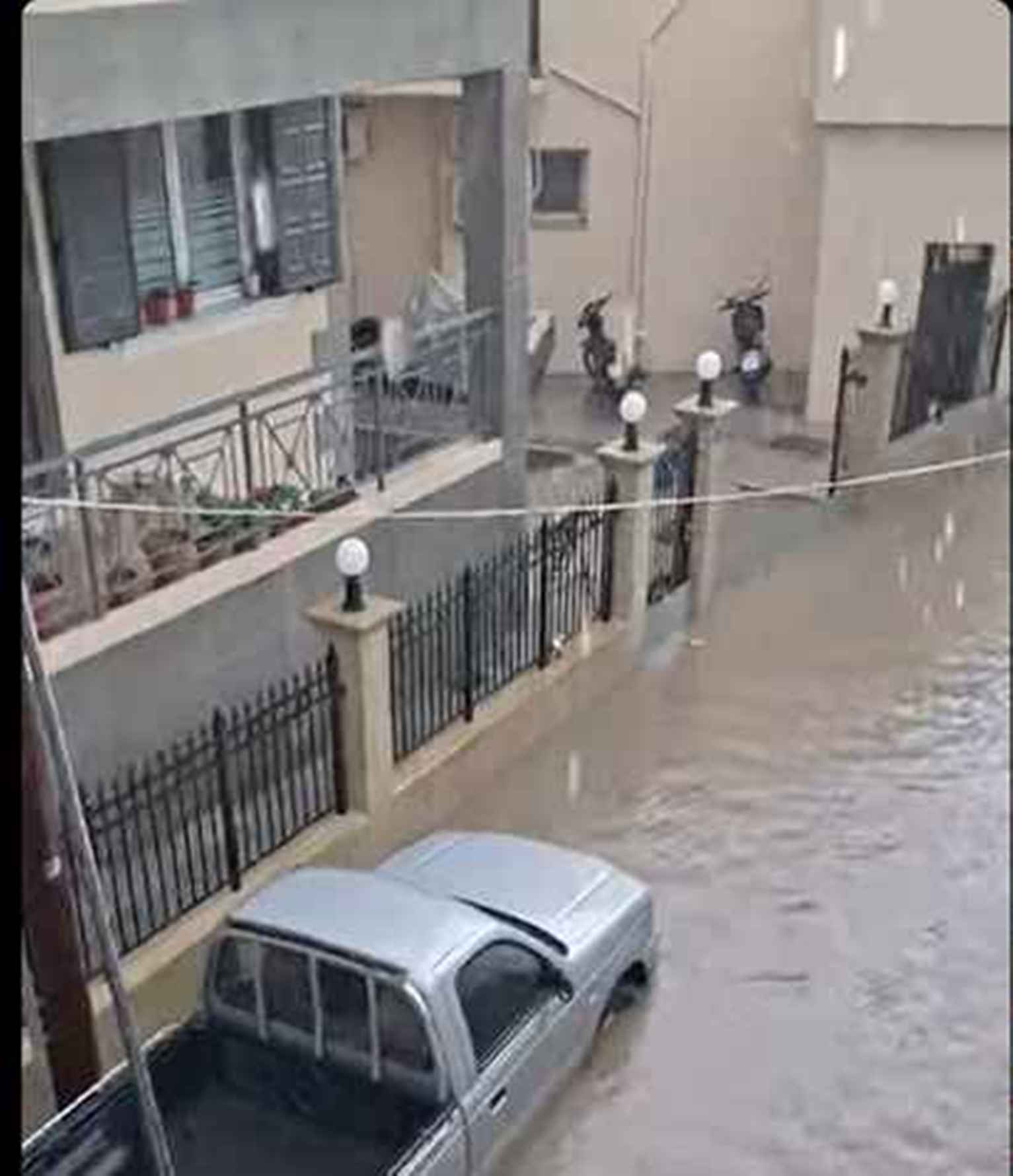 Ανάλογη, και σε αρκετά σημεία χειρότερη, είναι η εικόνα στα Καραμανλίδικα, όπου ο δρόμος πλημμύρισε, με το νερό να φτάνει μέχρι και να καλύπτει τα λάστιχα των αυτοκινήτων, δημιουργώντας σοβαρό κίνδυνο για την κυκλοφορία.