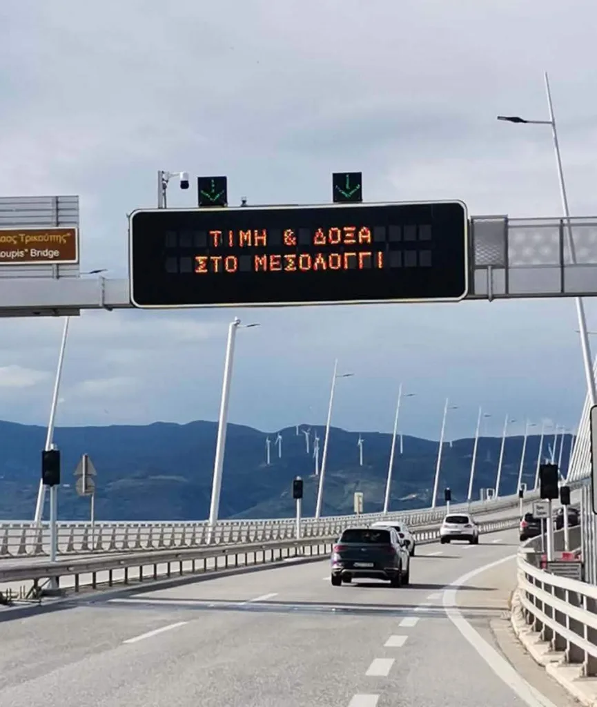 Από απόψε Παρασκευή 3/04/206 έως και την Κυριακή 5 Μαρτίου, η Γέφυρα φωταγωγείται, ενώ ήδη προβάλλονται μηνύματα μνήμης της ιστορική επετείου «Τιμή και Δόξα στο Μεσολόγγι» και «Ελεύθεροι Πολιορκημένοι».