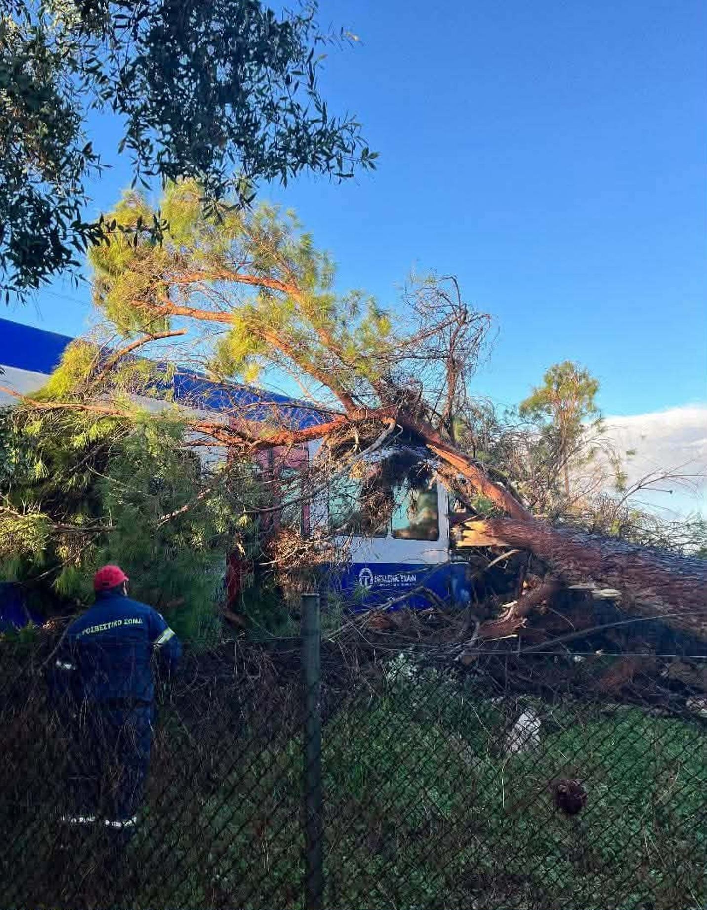 Το πεύκο έπεσε πάνω στο βαγόνι του μηχανοδηγού