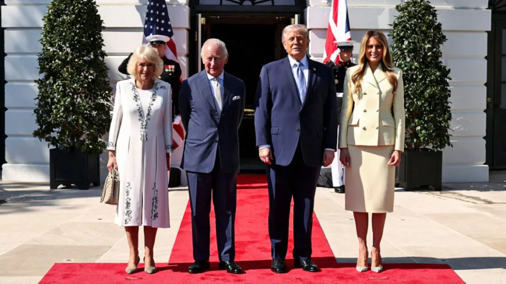 Το αμερικανικό προεδρικό ζεύγος, ο Ντόναλντ και η Μελάνια Τραμπ, υποδέχτηκαν στον Λευκό Οίκο το βασιλικό ζεύγος της Βρετανίας, τον Κάρολο και την Καμίλα, κατά την πρώτη ημέρα της τετραήμερης επίσημης επίσκεψής του στις ΗΠΑ.