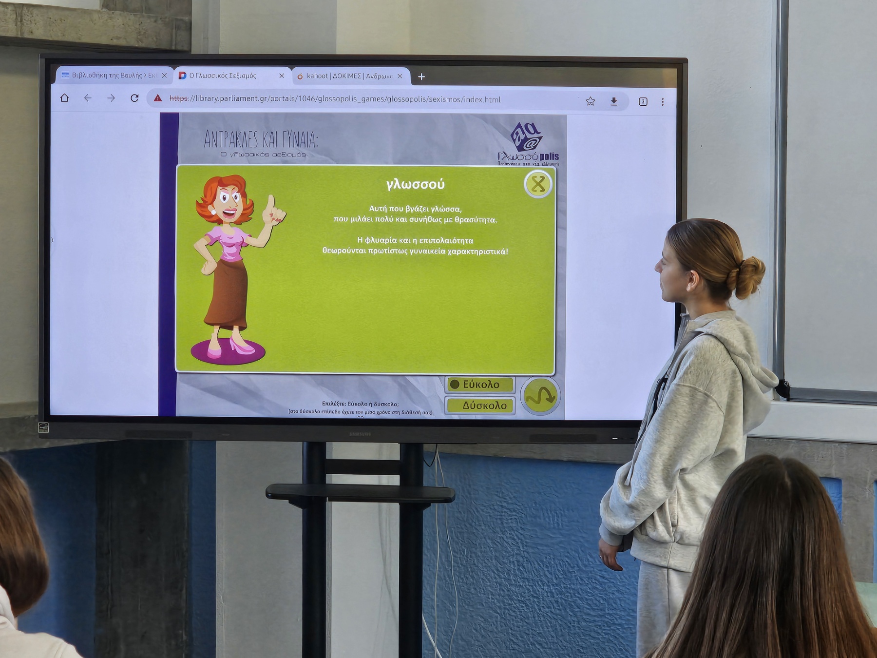 Στο πλαίσιο της θεματικής για τον κοινωνικό ρατσισμό, οι μαθητές διερεύνησαν πώς οι λέξεις που χρησιμοποιούμε καθημερινά μπορούν να γεννήσουν ή να καλλιεργήσουν διακρίσεις και στερεότυπα. Μέσα από διαδραστικά γλωσσικά σενάρια και τα ψηφιακά παιχνίδια της «Γλωσσόπολις» και του Kahoot, ήρθαν σε επαφή με στερεοτυπικές συνήθειες επικοινωνίας και επιχειρηματολόγησαν πάνω σε σύγχρονα κοινωνικά ζητήματα. Η δράση τους βοήθησε να κατανοήσουν ότι η γλώσσα είναι ένας δυναμικός οργανισμός που, μέσα από συνειδητές επιλογές, μπορεί να μετατραπεί από εργαλείο αποκλεισμού σε ένα ισχυρό μέσο συμπερίληψης, σεβασμού και κοινωνικής ισότητας. (Υπεύθυνη εκπαιδευτικός: Ανδρωνά Σταματία, Φιλόλογος)