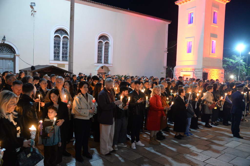 Στὸν περικαλλῆ Ναὸ τοῦ Ἀποστόλου Ἀνδρέου προέστη τῆς τελετῆς τῆς Ἀναστάσεως, μὲ τὴν συμμετοχὴἀπείρου πλήθους, ὁ Σεβασμιώτατος Μητροπολίτης Πατρῶν κ.κ. Χρυσόστομος, ὁ ὁποῖος ἀπηύθυνεἐγκάρδιον χαιρετισμὸ καὶ Ἀναστάσιμο ἀσπασμὸ στὰπλήθη τῶν εὐσεβῶν Χριστιανῶν καὶ ἐκάλεσε ὅλους νὰπροσευχηθοῦν γιὰ τὴν κατάπαυση τῶν πολέμων στὴνΜέση Ἀνατολὴ καὶ στὸν Βορρᾶ, ποὺ βάφουν μέ αἷματην γῆ, ἄδικα. Εὐχήθηκε εἰρήνη στὶς καρδίες, στὶςοἰκογένειες καὶ στὸν κόσμο ὁλόκληρο.