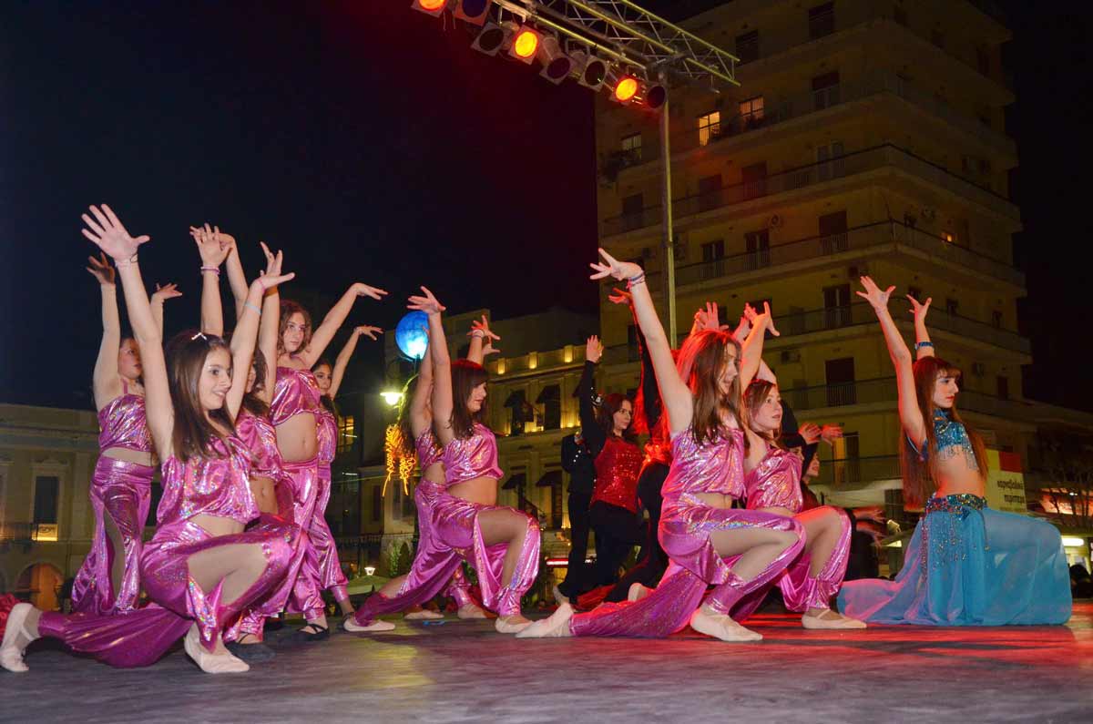 Από την κεντρική σκηνή κάθε σχολή θα παρουσιάσει ειδικά επιλεγμένες κεφάτες χορογραφίες, που θα ξεσηκώσουν τους θεατές και θα δώσουν το έναυσμα με χορό, στα βήματα του οποίου θα συντονιστούν τις επόμενες μέρες μικροί και μεγάλοι στις μεγάλες παρελάσεις του Καρναβαλιού μας.