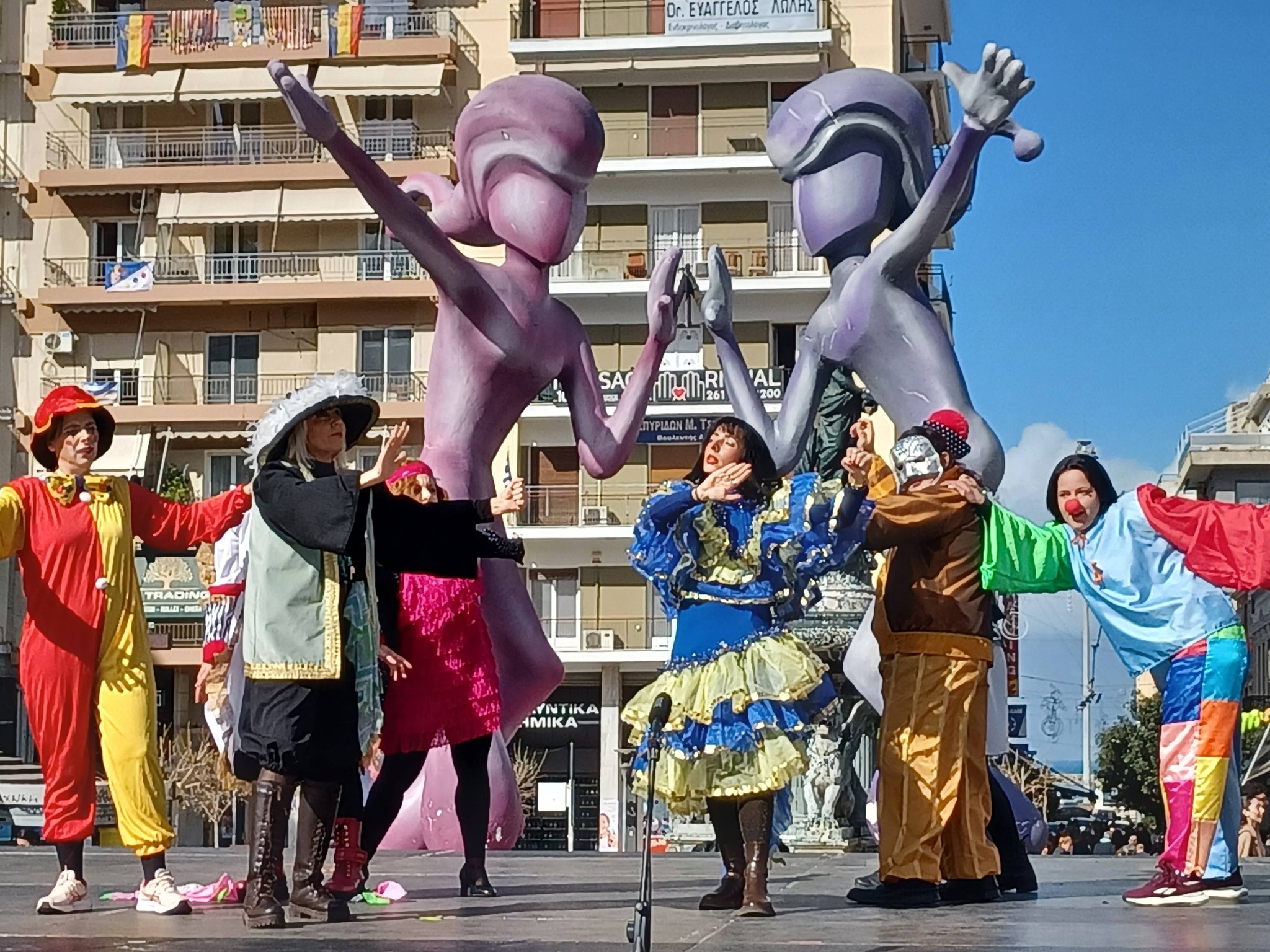 Συγκεκριμένα το Σάββατο το πρωί, στο πλαίσιο των εκδηλώσεων της ΚΕΔΗΠ Καρναβάλι Πάτρας, πραγματοποιήθηκε η εκδήλωση «ΘΕΑΤΡΟΚΑΡΝΑΒΑΛΟΞΕΦΑΝΤΩΜΑΤΑ» στην Πλατεία Γεωργίου, με τη συμμετοχή 9 θεατρικών ομάδων της πόλης μας, τα οποία παρουσίασαν ολιγόλεπτα σατιρικά κωμικά δρώμενα. Το ΘΕΑΤΡΙΚΟ ΕΡΓΑΣΤΗΡΙ της «ΠΟΛΥΦΩΝΙΚΗΣ», παρουσίασε το δρώμενο: «Πάνω πόλη χαβαλέ, κάτω πόλη κυριλέ», ενώ στα μεσοδιαστήματα των παρουσιάσεων η Δημοτική Μουσική και η 40μελής ΦΙΛΑΡΜΟΝΙΚΗ ΟΡΧΗΣΤΡΑ της «ΠΟΛΥΦΩΝΙΚΗΣ» (Διεύθυνση: Γιώργος Μπουρδόπουλος), έπαιξαν διάφορους επίκαιρους σκοπούς.